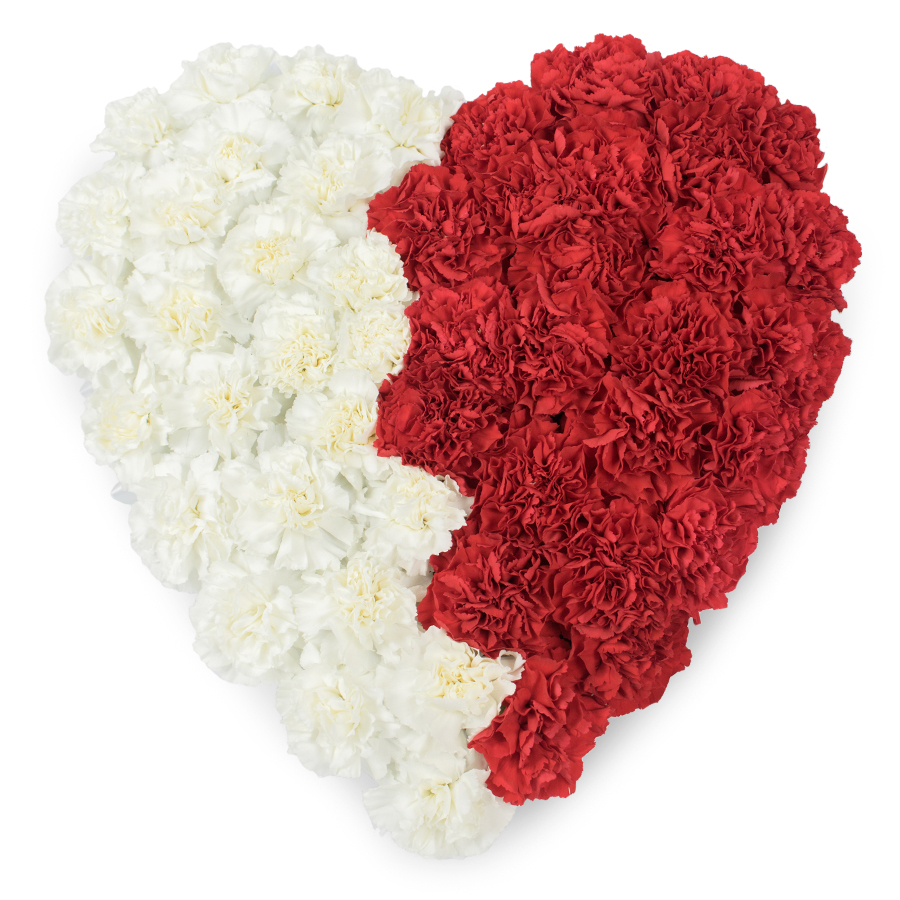Embrace the timeless elegance of our Carnation Heart Arrangement, featuring a perfect blend of white and red carnations. Each bloom is hand-selected to ensure the highest quality and freshness.